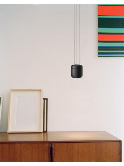 The Cavity Suspension S is available in black, white, aluminum gloss finish and bronze finish. The canopy is always supplied in the matching finish to the lamp. An LED is integrated as the light source, which can be replaced on site if required. The lamp can be dimmed on site with a leading edge or trailing edge phase dimmer. The pendant lamp has a colour temperature of 2,700 Kelvin extra warm white, on request it is also available with 3,000 Kelvin warm white.