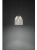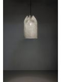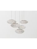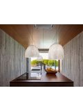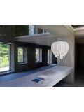 The Blum BL04 by Arturo Alvarez is a pendant lamp made of a single painted stainless steel thread. This stainless steel thread is interwoven and creates random volumes. The cable of this white pendant lamp can be shortened if required. As standard, this lamp has a transparent cable, on request it is also available with a black cable. The Blum BL04 is 40 cm high and has a diameter of 40 cm. This pendant lamp gets powered by lamp with E27 socket and can be operated with LED retrofit lamps. The Blum BL04 Lamp by Arturo Alvarez is dimmable on site and has a total height of 150 cm.