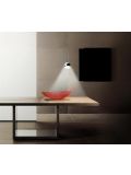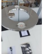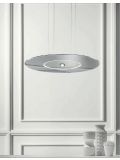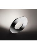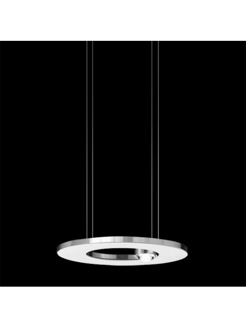 The Cini & Nils Passepartout 25 pendant lamp emits light downwards and upwards at the same time. The light is focussed in both directions by a lens. The luminaire has a diameter of 25 cm and a height of 2.3 cm. The Passepartout 25 is available in four versions: matt white, matt black, polished chrome and polished gold. The support element for the lens is made of diamond-cut aluminium in all versions except the gold version. The gold version has a supporting element in matt brass. The luminaire itself is always made of steel.