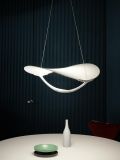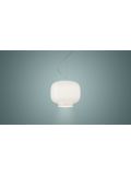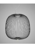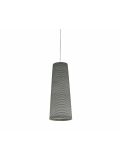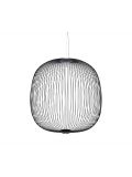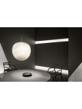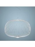 The Foscarini Spokes 1 MyLight pendant lamp has an elongated lamp shade with a height of 71 cm and a diameter of 32.5 cm. The shade consists of metal spokes which are fixed vertically. The spokes are made of round steel tubes and are painted with matt epoxy powder. The pendant lamp is available in white, copper, black, gold and graphite surfaces. Two LEDs with a total output of 30 watts are integrated as illuminants. The transparent electrical supply runs along a spoke in the lamp shade and is therefore not visible from the outside. The suspension cable can be shortened if necessary and has a maximum length of 340 cm. On request, the lamp is also available with a longer cable.