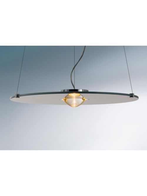 The Licht in Raum Solo Super can be individually suspended in total height when installed. The pendant lamp distributes its light upwards and downwards at the same time. The light that is emitted downwards is focused by a glass lens and emitted without glare. Two LEDs are included as light sources. The Solo Super is available in five glass finishes: clear, matt white, blue, green or orange.
