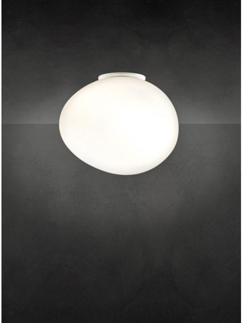 The Foscarini Gregg Soffitto Parete Midi can be used as a wall or ceiling light. Its glass is 21 cm long, 17 cm wide and 17 cm high / deep. This glass is hand-blown, acid-etched and white satin. Thus the light is emitted glare-free in all directions. The wall or ceiling mount is made of lacquered metal in white. The lamp is operated with a replaceable E14 LED retrofit bulb. The Gregg Soffitto Parete Midi wall and ceiling light can be dimmed on site.