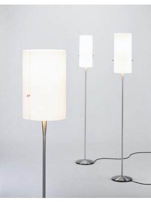 The Serien Lighting Club lamps include a wall, a table and a floor lamp. All three lamps of this series are available with a shade in Chintz white or cream colour. The table and floor lamps are also available in various sizes. The Large version is the same as the Small version, but it has a larger shade diameter. The upper one and lower two lamps can be switched separately for the floor lamp. On the shade are integrated at the side two rotary knobs, one of which switches the light off and on and the other dims the light infinitely. The light is emitted from the floor lamp downwards and upwards directly as well as through the shade also diffuse into the room. The cable of the table and floor lamp can be rolled up in the base of the lamp. The frame for these two lamps is available in aluminum brushed or black lacquered. Also the wall bracket of the Club wall is available in these surfaces. Floor and table lamps are equipped with halogen lamps, while the wall lamp is equipped with a replaceable LED. The wall light can be dimmed by the customer.