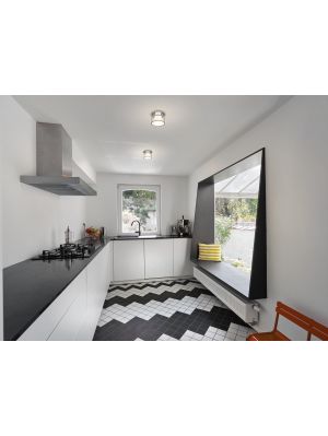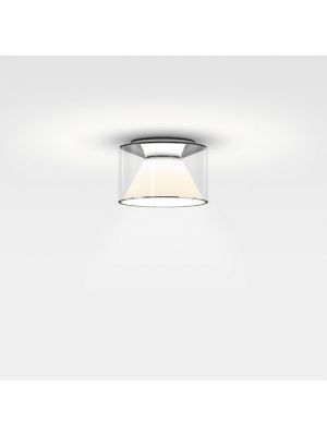 The Serien Lighting Drum lamp series comprises four ceiling lamps. All lights of this series have a mouth-blown clear glass. Inside the glass there is a conical reflector made of opal acrylic glass, through which the light is directed downwards and softly scattered all around. All lamps are available in three versions: with a colour temperature of 2,700 Kelvin extra warm white, 3,000 Kelvin warm white or with the Dim to warm function. All versions can be dimmed on site with a leading edge or trailing edge phase dimmer. With the Dim to warm function, the colour gradient is reproduced with the warmer light colour of a classic filament lamp. During dimming, the colour temperature changes continuously from 1,800 Kelvin extra warm white to 3,000 Kelvin warm white.