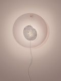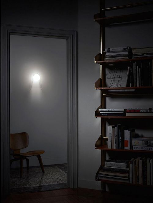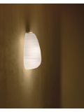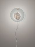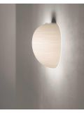 The Foscarini Satellight Parete is a wall lamp consisting of two elements made of blown glass. The outer glass is conical and transparent. It is 29 cm high, 21 cm in width and 17 cm in depth. A spherical glass diffuser is integrated inside this element. The white glossy diffuser emits the light into the room without glare. At the same time, the downward open glass cone directs the light directly downwards. The lamp is operated with a G9 bulb.