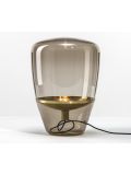 The Brokis Balloons Medium smoke grey is one of the medium sized lamps of this series. It is 61 cm high and has a diameter of 43 cm. This lamp has a mouth-blown glass in smoke grey. It is also available with transparent or smoke brown glass. A metal reflector is integrated in the glass, which is finished by hand. This reflector is offered in white, black, lemon yellow, orange, chrome, brass, copper and chrome brushed. The Balloons Medium smoke grey has a black cable as standard, on request the lamp is also available with the cable colours white, dark grey, light grey, red and yellow. The table lamp is regulated by a dimmer on the cable. The E27 socket is suitable for halogen lamps or LEDs.