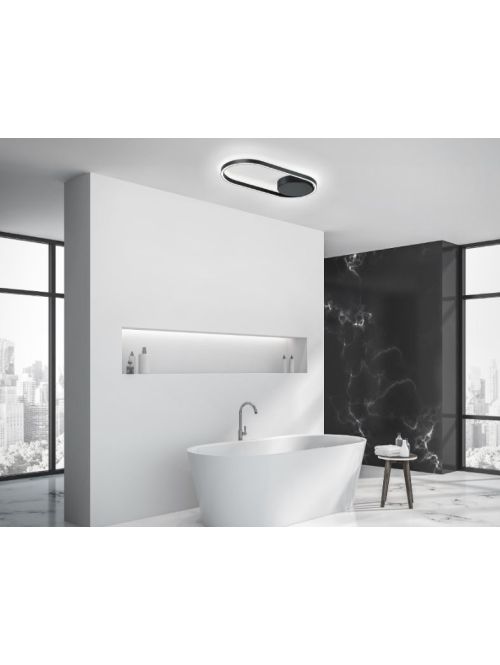 The GKS Knapstein RIKE is an oval ceiling lamp with a length of 68.4 cm. The light from this LED ceiling lamp is emitted both downwards and upwards.