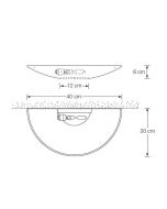 Die Florian Schulz Era 40 Wandleuchte ist eine Halbschale aus Metall mit einer zusätzlichen Öffnung für einen Lichtaustritt nach unten. Die Leuchte Era 40 wird von Florian Schulz in den Oberflächen Messing poliert lackiert, Messing matt gebürstet lackiert, Messing vernickelt, Messing verchromt, Messing brüniert lackiert, Messing dunkel brüniert lackiert, Messing verkupfert, Messing vernickelt lackiert, Messing poliert unlackiert, Messing verkupfert matt gebürstet lackiert oder Messing vernickelt matt gebürstet angeboten. Diese Leuchte verfügt über eine Breite von 40 cm. Als Zubehör ist für die Leuchte auch eine zusätzliche Glasabdeckung für die obere Öffnung erhältlich.