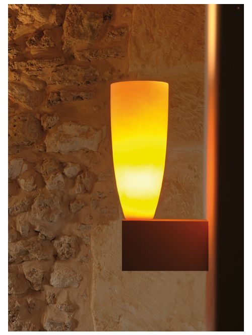 The K-meral ARON Wall Lamp comprises a lampshade out of porcelain and a socket coming with an integrated dimmable transformer out of brushed stainless steel. It is especially the colourplay of yellow and orange that will remind you of the blossom of a Chinese lantern plant when the ARON Wall Lamp is switched on. The K-meral ARON Wall Lamp radiates a direct neutral light onto the ceiling as well as the wall. Moreover it scatters a warm diffuse lighting into its surrounding.