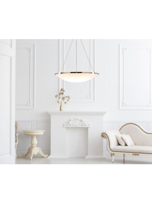 The Florian Schulz Erea 55 ceiling lamp has the shape of a bowl made of opal glass in white. The diameter of the lamp is 55 cm. The ceiling lamp by Florian Schulz is offered in the surfaces brass polished lacquered, brass matt brushed lacquered, brass nickel-plated, brass chrome-plated, brass burnished lacquered, brass dark burnished lacquered, brass copper-plated, brass nickel-plated lacquered, brass polished unlacquered, brass copper-plated matt brushed lacquered or brass nickel-plated matt brushed.