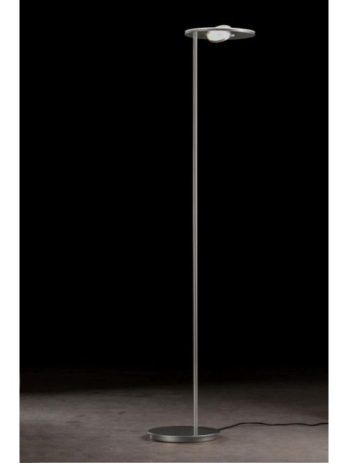 The Holtkötter Nova Oog floor lamp has a rotating lamp head. This head consists of two parts: While the outer part always emits its light upwards, the inner part can be swivelled. This means that this lamp can radiate light only upwards, upwards as well as downwards or upwards and to the side. The two parts of the lamp head can be switched and dimmed separately via two push button dimmers on the lamp rod. A memory function saves the last selected brightness level of the light and sets it again when it is switched on again. The integrated LEDs have a colour temperature of 2,700 Kelvin extra warm white and can be replaced as required. The floor lamp Nova Oog by Holtkötter is available in white, bronze, matt aluminum, black, platinum and anodised brass.