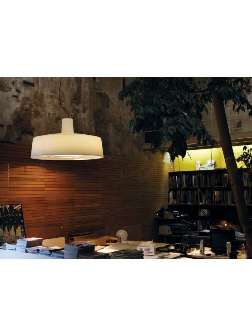 The Marset Soho 112 IP44 LED is a pendant lamp for outdoor use. It has a polyethylene shade with a diameter of 112.6 cm. The height of the shade is 60.7 cm. The lamp shade is produced by centrifugal casting, creating a groove pattern on the shade. The light is emitted from the lamp directly downwards. A white-opal diffuser made of methacrylate ensures uniform and glare-free light emission. The Soho 112 IP44 LED is available in white, stone grey and black. The suspension cables can be shortened if necessary. The integrated LED can be dimmed on site and has a colour temperature of 2,700 Kelvin extra warm white. On request, the pendant lamp can also be supplied with a colour temperature of 3,000 Kelvin warm white.