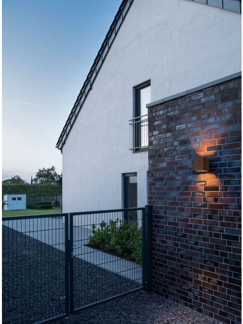 The SLV Rusty Up/Down WL square outdoor wall lamp is made of FeCSI steel that has undergone a special chemical treatment. The lamp with IP65 protection emits its light upwards and downwards, as well as conically at the top and bottom of the wall.