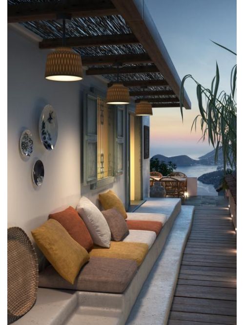 The Bover Soft PF/30 Outdoor ceiling lamp emits its light mainly downwards, but due to the pattern on the lamp shade, light also shines to the side. Its lamp shade has a diameter of 30 cm and a height of 24 cm. In total, this lamp is 38 cm high. The Soft PF/30 Outdoor ceiling lamp is available with a lamp shade in the surfaces light grey, olive grey and ochre. The aluminum ceiling mounting is supplied in black. The Soft PF/30 Outdoor has an E27 socket that is also suitable for replaceable LEDs (retrofit).