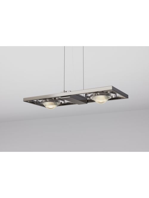 The Licht im Raum Ocular 2 LED Series 100 is a pendant lamp with a length of 56 cm and a width of 24 cm. Its two lenses each have a diameter of 100 mm and can be swivelled. The Ocular lenses focus and control the light in a precise, glare-free manner, creating superior light quality. The lamp distributes its light focused and homogeneously downwards through the lenses.