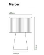 The Marset Mercer table lamp has a total height of 53 cm and consists of a cylinder made of mouth-blown transparent glass. A cotton textile shade is integrated in the upper half of the body. The shade has a diameter of approx. 36 cm and is available in natural or pearl white cotton ribbon. An opal diffuser is attached to the shade so that the light is also emitted glare-free upwards. In addition, the lamp radiates its light to the sides and downwards. The Mercer table lamp can be operated with a compact fluorescent lamp. The brightness can be regulated via a dimmer on the supply line.